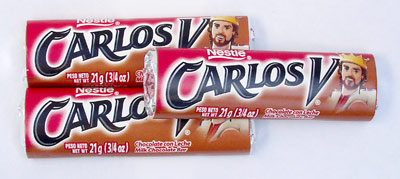 Nestle Carlos V Milk ChocolateName: Carlos V ![]() First, I have to say that I appreciate the size of these bars. They’re not miniature sized and not full candy bar sized. They’re the right size. You can eat two and probably not feel bad about it. The image of Carlos V on the front kind of creeps me out the same way that the Burger King pantomime character in the recent commercials does, but maybe you don’t have a problem with that. Anyway, what’s inside is a small milk chocolate bar. It’s kind of a cross between a European Cadbury bar, with its sticky milkyness and an American Nestle bar with its strong chocolate flavor. It’s very sweet, but I know that’s most people’s attraction to milk chocolate over dark chocolate. It was not at all grainy and had a pleasant vanilla scent. It melted well on the tongue. Mostly what I got from it though is a taste of powdered milk - which if you don’t think about it too hard tastes kind of like malt. But don’t think too hard if you’re going to enjoy this bar, just eat it. Rating: 6 out of 10. Monday, May 9, 2005
