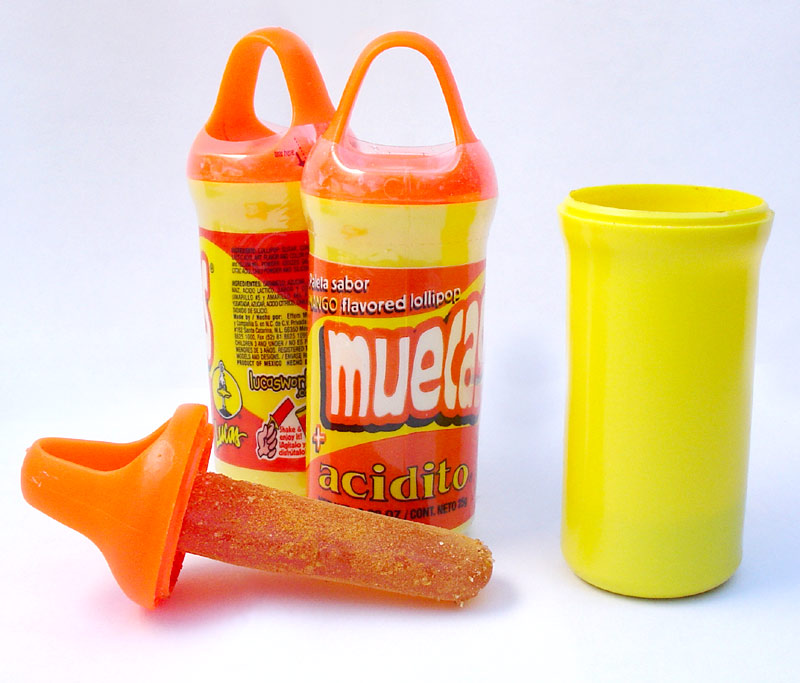 These curious little plastic cups have a mango lolly in the lid and a cup filled with a sour/spicy powder to dip into. Muecas, as far as I know, means face in Spanish. Maybe it’s in reference to the faces you make when you eat this stuff.