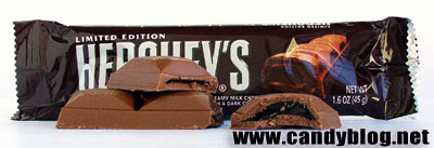 Hershey’s Double ChocolateName: Hershey’s Double Chocolate ![]() I’m not sure what Hershey’s is up to with this one. It’s just a bad idea. There are plenty of good filled candy bars, but I’m not sure I understand how you’d go so wrong with this one. Inside on the little white cardboard tray is a bar with four square segments of milk chocolate. Inside those is something that looks like Hershey’s chocolate syrup. Which we all know isn’t chocolate, it’s just cocoa/sugar/water. So what you end up with is a very sweet milk chocolate outside and a sickly sweet cardboard tasting sugar goo. It’s messy, it’s sticky. I hope that this edition is very limited because this bar is just sad and cheap. I ate two out of the four squares and threw the other half out. Don’t get me wrong, I think that Hershey’s makes good product. It’s consistent and fresh and I applaud their use of the “Limited Edition” to try out new flavor combinations, but I’m not sure how this one made it past the test stage. I would also suggest the use of freshness dating. Rating - 3 out of 10. POSTED BY Cybele AT 12:32 pm Candy • Review • Hershey's • Chocolate • Limited Edition • 3-Unappealing • United States • Monday, May 9, 2005