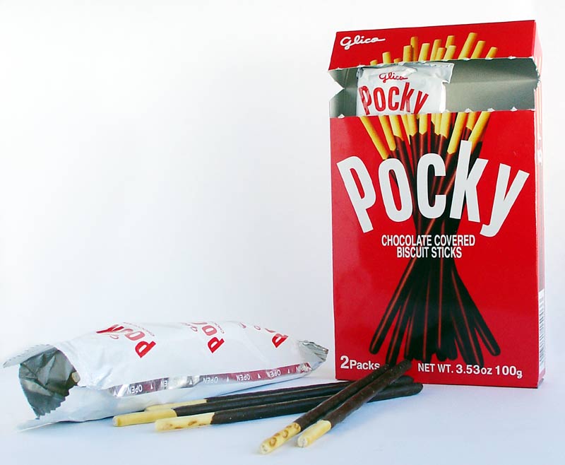 Chocolate PockyName: Pocky (Chocolate) ![]() I love Pocky. Can I just start with that? What a perfect candy. It’s got the savory crunch of a biscuit and the smooth velvety flavor of chocolate. Opening one of the foil packs I was met with the overwhelming scent of dark chocolate. The sticks were nicely coated (not too much) with chocolate, and leave a little uncoated spot at the bottom where you can hold it without getting chocolately fingers - something they don’t do with chocolate covered pretzels. The coating is a thin sheath, but because of the richness of the chocolate, it’s the right proportion. The biscuit or pretzel part is bland - it’s not salty nor sweet, but the perfect bit of crunch and crispness for the chocolate. The portion size is huge. Half the package (250 calories, 90 from fat but only 20 mg of trans fats). I wasn’t able to eat that big of a portion - that’s 22 sticks. I think they’re a great thing to tuck in a lunch bag or to go off on a picnic (provided your pack doesn’t get too hot and they melt and stick together). Easy to snack on, easy to share. Rating: 9 out of 10 See earlier review of Green Tea Pocky. Monday, April 18, 2005
