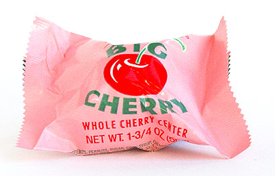 Christopher’s Big Cherry is Big PeanutsName: Big Cherry ![]() I had no idea there were made right here in Los Angeles. I also didn’t know that the Ben Meyerson Candy Co. is also behind all those Sunkist candy treats. It only makes sense then, that they’d have a big chocolate covered cherry in their repetoire. The primary curiosity of this candy, as Amy pointed out, is that the first ingredient on the label is not chocolate or cherries, but peanuts. Then sugar, corn syrup, CHERRIES and four items later is Cocoa. Hmm, might not be real chocolate on the outside.