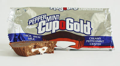 The Mysterious Cup-O-White GoldName: Peppermint Cup-O-Gold ![]() This candy cup has left me mystified. Is it really from Adams-Brooks? They don’t mention it on their website ... no one mentions it on their website on any of the internets. Have I stumbled across an inter-dimensional 99 cent store that sells candy unknown to us here? Why is it called Cup-o-Gold anyway? The center is clearly white. The package is silver ... these things trouble me. But not enough to keep me from eating it. Like the original Cup-O-Gold, this milk chocolate cup sports toasted coconut and almond bits in the chocolate. The ratio of chocolate to the filling is a little off. Upon my first small bite (not pictured), I didn’t hit filling, just chocolate. The second bite, which was sizeable (like the photo) didn’t hit filling. Finally on the fourth bite which by now meant half the cup was gone, I hit a small hidden cavity of filling. Instead of a light, frothy filling like the Cup-O-Gold, this one was a little tacky, a little stiff. The mint was barely perceptible. I bought this thinking it’d be like a milk chocolate Junior Mint - a gooey minty cream center. Alas, the coconut competes too much with the scant mint. If there were less chocolate and more filling, perhaps it wouldn’t seem so overpowering. However, the package does say thick rich milk chocolate, so who am I to go expecting things not advertised? Rating - 4 out of 10. POSTED BY Cybele AT 1:29 pm Candy • Review • Adams & Brooks • Chocolate • Coconut • Marshmallow • Mints • 4-Benign • United States • 99 Cent Only Store • Tuesday, July 12, 2005