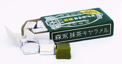Green and Black CaramelsName: Green Tea and Black Sugar Caramels I know, you must think me obsessed with caramels. But they are one of the most perfect expressions of sugar and fat. Soft, yielding, bursting with sugary flavor that lingers in the crevices of your mouth. They’re great for summer too, since they’re not subject to the temperature extremes of chocolate. As promised, I’m ready to share my Japanese finds from my recent shipment. First is Morinaga’s Kokutou Caramel. This is what’s known as a black sugar caramel, or probably what westerners know of as brown sugar or molasses. This caramel is darker than the milk caramels I’ve tried from Japan. It has a slightly rummy aroma and a definite molasses bite to it when chewing. It’s a really nice, smooth caramel with a good finish. There’s no molasses bitterness either. It’s not sticky, but plenty chewy with a good milky consistency. Morinaga also makes a Matcha Caramel, which is a green tea flavored caramel. The nugget is definitely green. It smells of green tea and tastes just like green tea ice cream, with that same smooth roasted flavor and slight bitter tinge. Unfortunately after chewing for a while, it feels a little grainy and slightly bitter, like there are real ground up leaves in there. That aside, they’re quite addictive and both caramels complement each other well - so I can just alternate between the two all afternoon. Rating: Kokutou Caramel - 8 out of 10 Monday, July 4, 2005