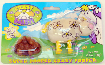 Poopy CandyName: Crazy Daisy - The Super Duper Crazy Pooper ![]() I was going to save this review until the holidays were upon us and you were begging me for gift suggestions. But BoingBoing posted about it earlier this week, so I figured it was topical. I got this cutesy little sample from Chris at the Candy Warehouse. He gave me my pick of the variations on the theme, there are pooping pigs, pooping cows, pooping bulls and the fun new one is the wind up penguin that leaves little gifts all over the table. Of course, those who’ve known me for more than 30 years know that I have a special fondness for sheep (cuz they’re stupid).