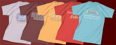 Hershey Offers Free TeesI just found out that Hershey has a cool free offer. For 15 wrappers you can get one of six retro designed logo tees. ![]() More info here. There’s a $2 shipping and handling charge, but totally worth it if you dig these candies and logos. If you love the shirt and just don’t want to eat that much candy (what’s wrong with you?), you can order them for $16.95 each. Unfortunately I can’t get part of their freakishly elaborate flash site to load the terms & conditions, but I’ll post more as I find it. UPDATE: I caved and went to their site using IE and found this page which should tell you most everything you want to know. Except what I want to know, which is whether or not the Twosomes count. But Meme, you’ll be happy to hear that for all five it’s only 55 wrappers! Thursday, August 4, 2005