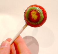However I felt about it, Will and Amy seemed sufficiently engaged by the candy to rate it about a five (they’d eat one if someone gave it to them, in fact, they took the extras home with them), but Robin seemed only to tolerate it enough to get to a second layer. My rating: 2 out of 10. POSTED BY Cybele AT 3:42 pm Candy • Review • Hard Candy & Lollipops • 2-Appalling • Mexico • Friday, April 29, 2005