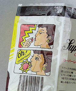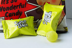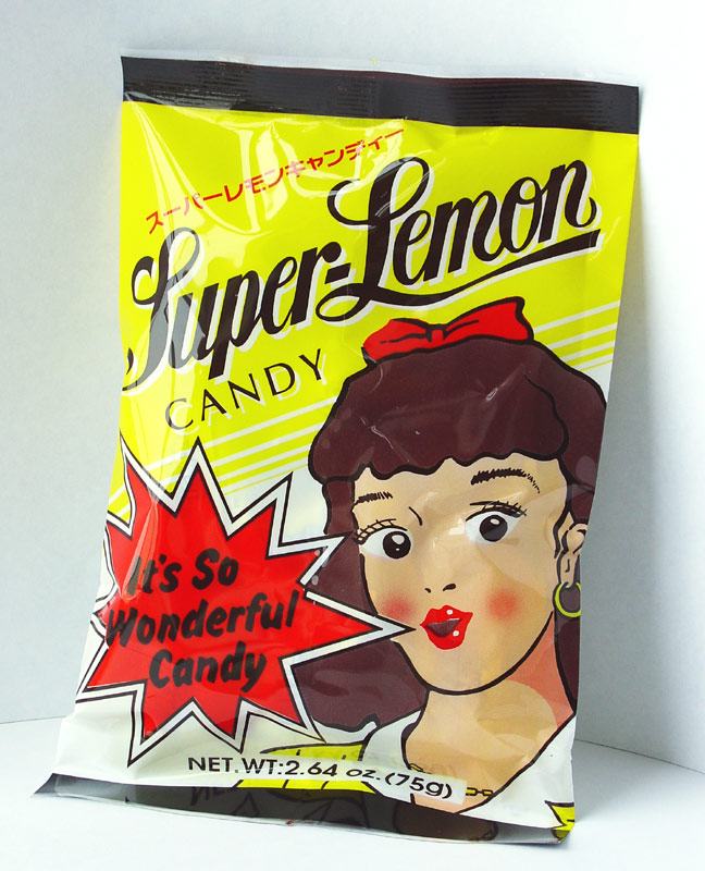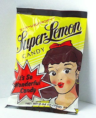 So Wonderful SourName: Super Lemon Candy ![]() Of course I’m a sucker for packaging. How could you resist this sassy lady with her cherry lips and surprised expression heralding “It’s So Wonderful Candy!” What’s even better are the pictographic description on the back: And is it ever sour. Taking them out of the individual packet, you’ll find a little round ball, about the size of a marble, distinctly yellow with a powdery dusting on it. Pop it in your mouth and you’re gonna definitely feel that “Oh! Super Candy” feeling. It’s sour. I’m serious. It’s painfully, numbingly sour. After the salty, toxic waste sourness dissolves away, you’ve got a lemon drop. It’s a good lemon drop, smooth and without too many airgaps. It’s got good essense flavor to it, too. If you like the megasours that have been on the market for years without the novelty that goes with them, this is a solidly good sour lemon ball. I’m unable to find much about the company that makes it, though it’s a common import and obviously packaged for the overseas market as much of the package is in English. Other reviews: Super Lemon has Awesome Power & Candy Critic.