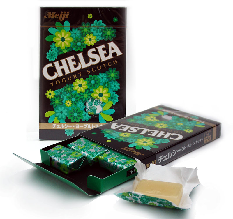 Meiji Chelsea Yogurt ScotchName: Chelsea Yogurt Scotch ![]() The Taste of Old Scotland! the candy heralds down the side of the tray inside the calico printed box. What Chelsea has to do with Scotland is beyond me. This is a candy blog, after all, not a geography one. I’m not sure I know what old Scotland tastes like. But these hard toffees are unlike any other toffee I’ve ever had. First, they’re opaque white and glossy when I unwrapped the piece, unlike the toasty cream color I’m used to. Putting it in my mouth I found it initially tart. Not in a citrus way, but in the way that yogurt is tart. It’s smooth and creamy, but with a little bite to it. I found them pleasant, but a little bland. I plan to finish the box, but it’s unlikely I’ll buy yogurt scotch again. However, there is another flavor that I saw at the market, regular butterscotch ... that sounds more my speed. Rating: 7 out of 10 POSTED BY Cybele AT 8:48 pm Candy • Review • Meiji • Hard Candy & Lollipops • Toffee • 7-Worth It • Japan • Thursday, April 21, 2005