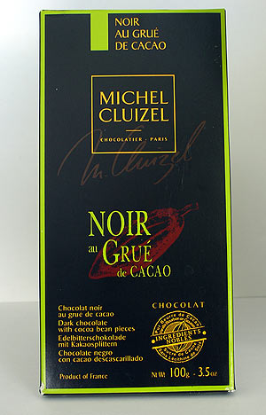 Noir au Grue de CacaoName: Noir au Grue de Cacao Michel Cluizel has been mentioned to me a few times as the epitome of fine, dense chocolate. I’ve looked at it quite a few times in the shops but have always been hesitant because of the price. Really, at $1.55 per ounce, this stuff better be pretty good. It’s nicely packaged, I like things in boxes instead of flimsy paper, especially for something that I’m not going to finish in one sitting. The scent of the chocolate is positively gorgeous. Chocolately, rich and with a hint of coffee. The bar I chose is a standard dark chocolate with bits of cocoa nibs in it. I’ve had this sort of bar before (I’ll try to find that bar again, because I really liked it) and was looking forward to the mix of textures and taste density. My first two squares were disappointing. I think I hit a bad patch of nibs, because they tasted very musty. But, upon revisiting it the next day, I found that the chocolate was very smooth with an excellent contrast of the crunchy nibs. Overall I think that the addition of the nibs if more of a novelty than an actual enhancement. I like nuts in my chocolate, or raisins or, jeeze, just about anything. But I don’t like things in my chocolate that don’t add to the experience. Rating: 6 out of 10. POSTED BY Cybele AT 10:08 am Candy • Review • Michel Cluizel • Chocolate • Nibs • 6-Tempting • France •