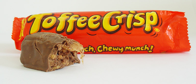 Toffee CrispName: Toffee Crisp ![]() I have to say that I think I am always bound to like candy that comes in orange wrappers. Perhaps it’s that I already associate it with Reese’s which is a fine brand. The package describes it as “toffee and crisped cereal filled milk chocolate” which I’d probably reverse and call it chocolate covered toffee and crisped cereal, but really, they’ve got all the bases filled. This combo might sound familiar to those who have had a Nestle 100 Grand, which is milk chocolate and crisped rice covering caramel. In this incarnation the crisped rice is mixed in some sort of toffee flavored cream (and not in with the chocolate covering) and then has a stripe of caramel on the top and is then covered in crumbly milk chocolate (it could be that my bar was beaten up). It’s sweet and really satisfying because it’s so big. (I don’t think the photo conveys the size, think of a fat Snickers bar.) The toffee part of is a bit lost on me, as far as I can tell there is no actual toffee in here. Maybe I wasn’t looking hard enough. This bar would fit into my list of bars to eat when I’m hankering for a crunchy bar. Much better than a Crunch or Krackle because of the added creamy crisped rice and you know I never argue with good chewy caramel. It’s kind of like the Whatchamacallit, except it doesn’t have a peanut butter component (but if they made one, I’d be down with that). Rating - 7 out of 10 POSTED BY Cybele AT 2:23 pm Candy • Review • Nestle • Chocolate • Toffee • 7-Worth It • United Kingdom • Saturday, April 23, 2005